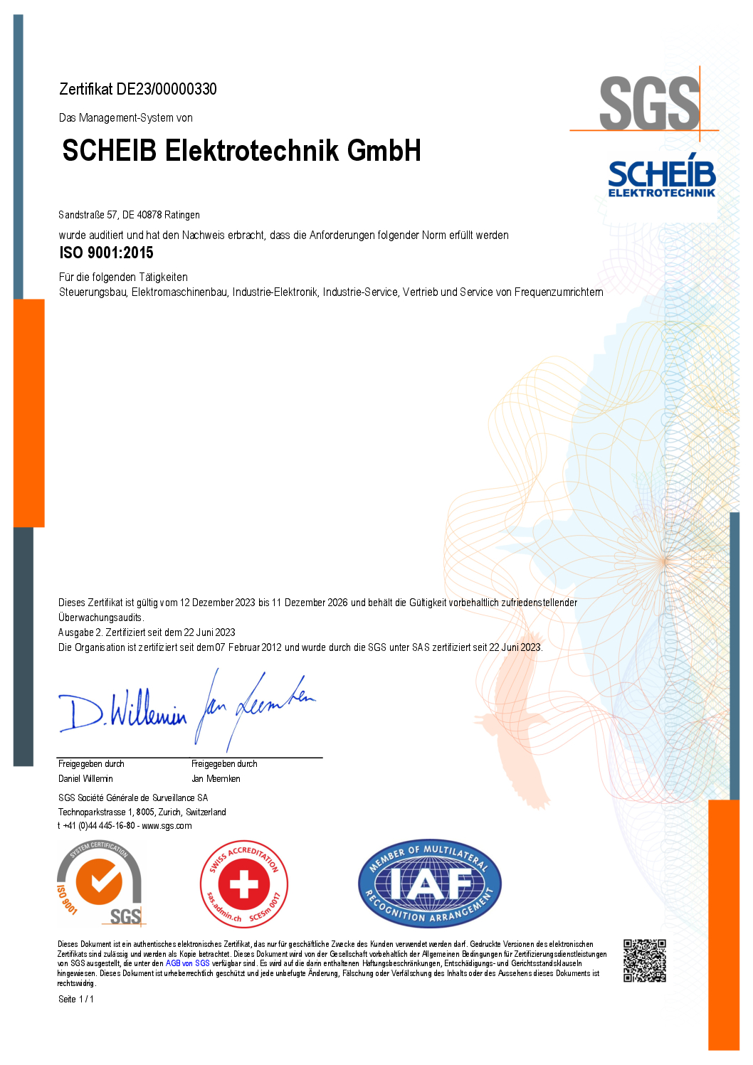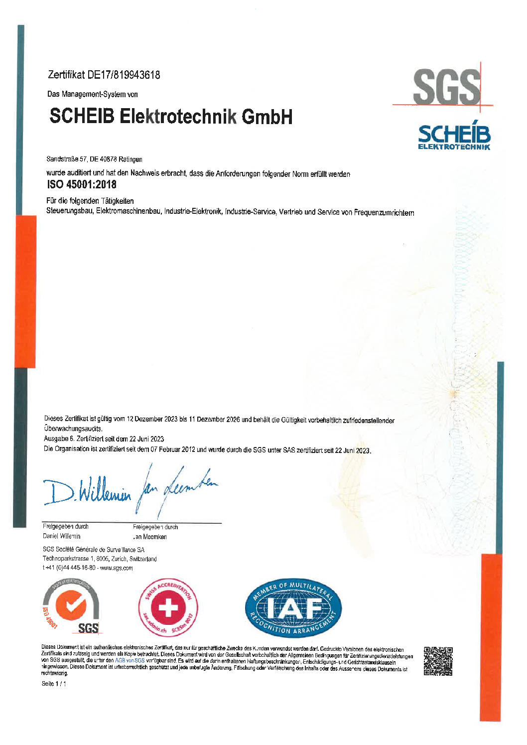 Durch unsere Zertifizierung nach DIN EN ISO 9001 und nach DIN EN ISO 45001 können wir unseren Kunden nicht nur die gewünschte Qualität liefern, sondern dieses auch weltweit anerkannt dokumentieren.